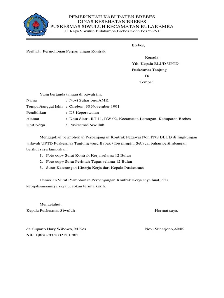 Berikut contoh surat permohonan perpanjangan kontrak kerja (waktu pekerjaan) : Inilah pembahasan selengkapnya mengenai contoh . Surat format perjanjian kontrak kerja karyawan perusahaan swasta. Ada beberapa contoh yang bisa anda pelajari, seperti kontrak kerja karyawan outsourcing, contoh surat perjanjian kerja karyawan tetap, kontrak . Surat pernyataan tidak memperpanjang kontrak kerja. Berikut contoh surat pemberhentian kerja atau surat pemutusan hubungan kerja untuk karyawan kontrak, karyawan tetap yang tidak diperpanjang.